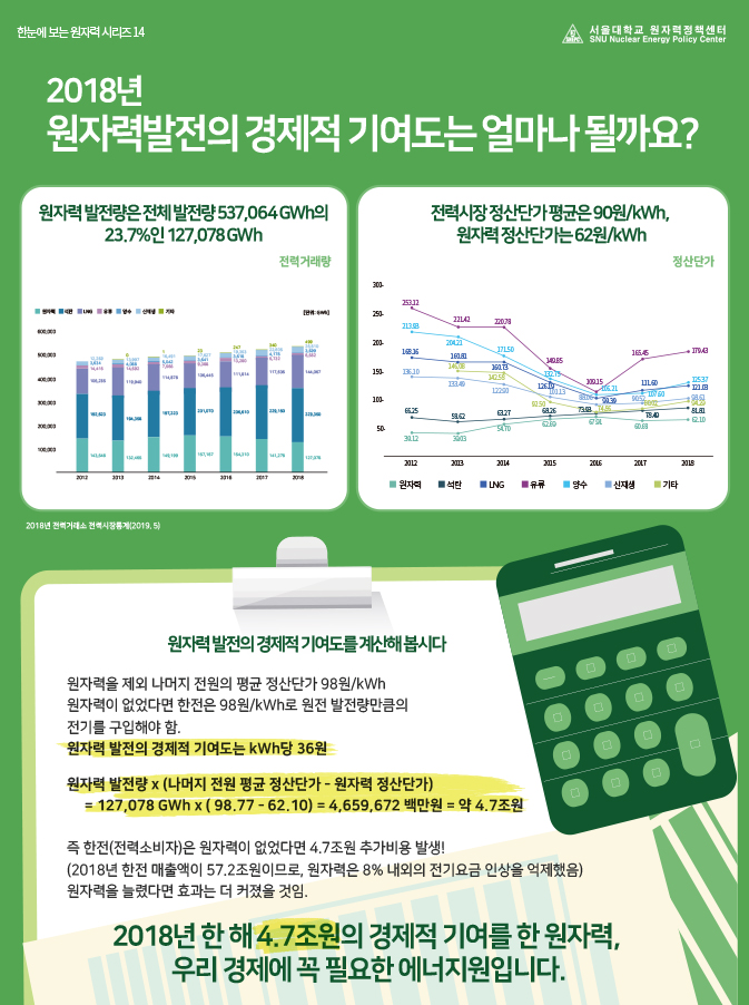 • 제목 [한눈에 보는 원자력 시리즈 14] 2018년도 원자력발전의 경제적 기여도는 얼마나 될까요?