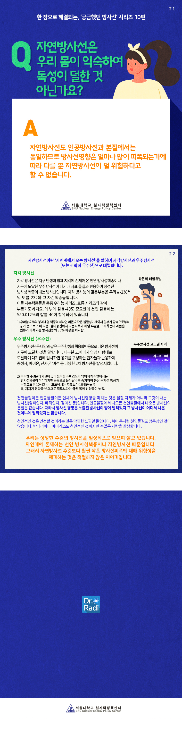 서울대학교 원자력정책센터의 '한 장으로 해결되는 궁금했던 방사선' 시리즈를 마치며 통합본을 올려드립니다.